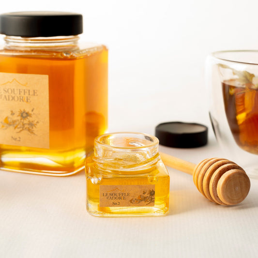 Naturellement sucré et riche en bienfaits, le miel est un trésor doré aux vertus apaisantes et énergisantes. Plein d'antioxydants, il renforce l’immunité, favorise la digestion et adoucit la gorge. Savourez la pureté de la nature dans chaque cuillerée !"